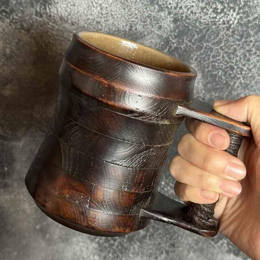 焚火で焼き朽ちさせた木製品の上に漆塗りを施した